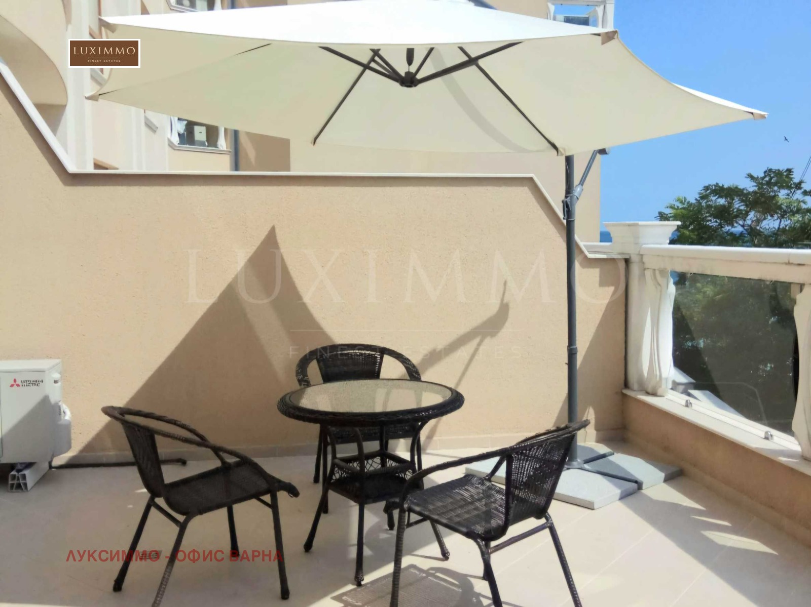 впечатляваща тераса - 35 кв.м, оборудвана с шатра и чадър идеално място за отдих и вечеря на открито.