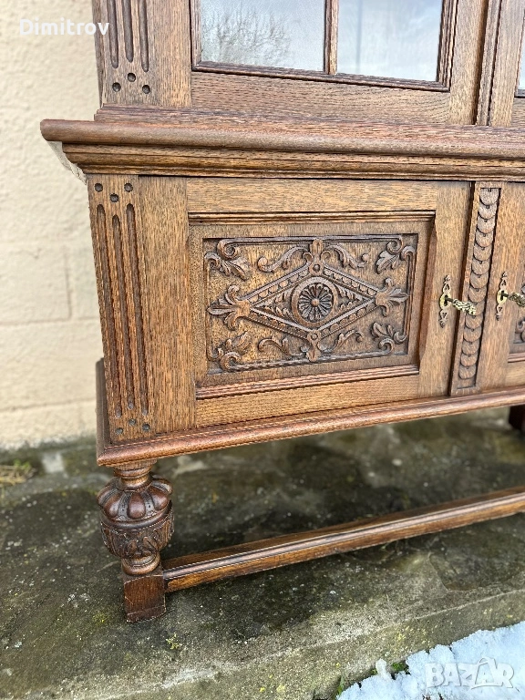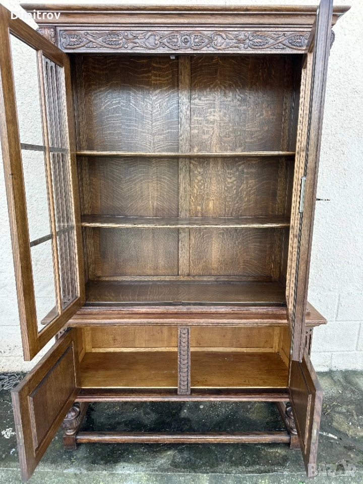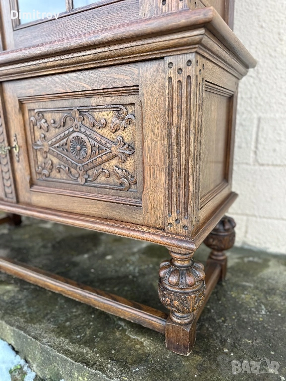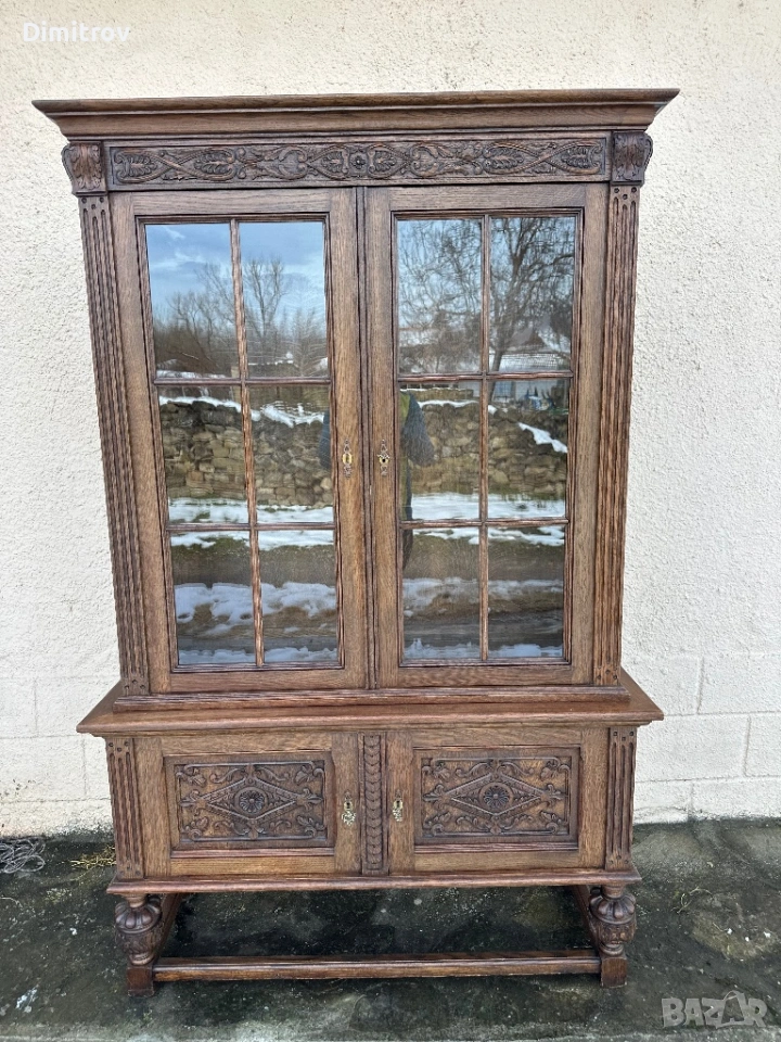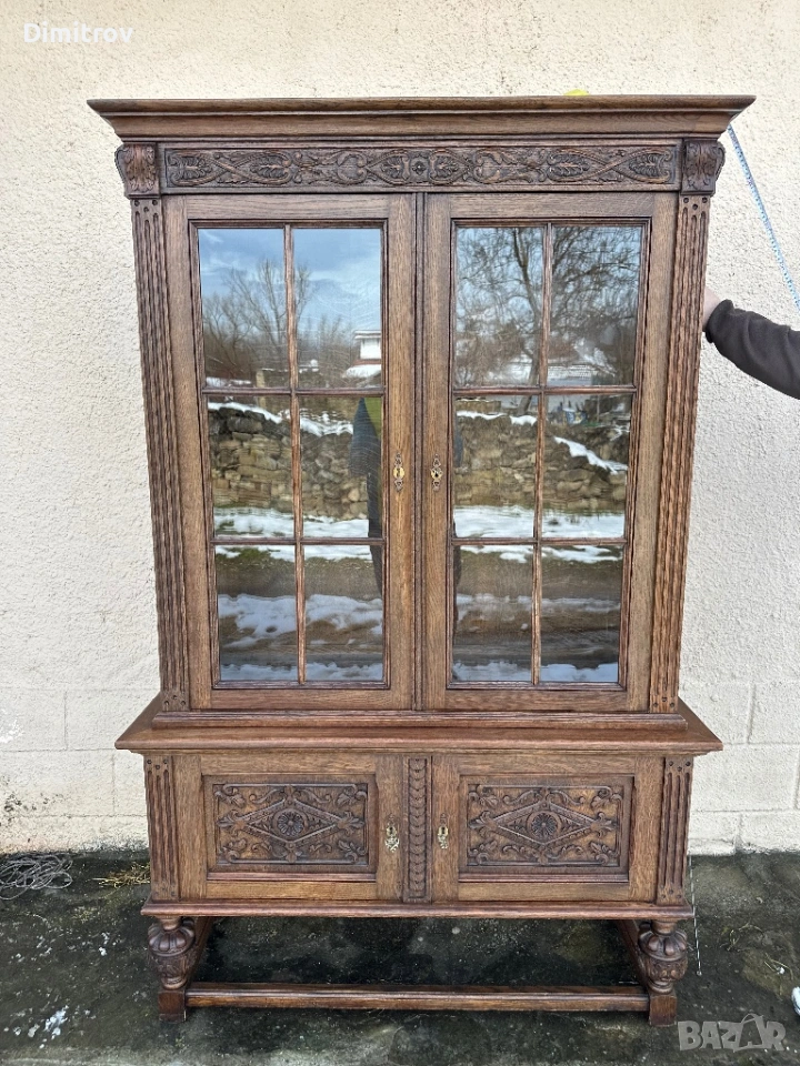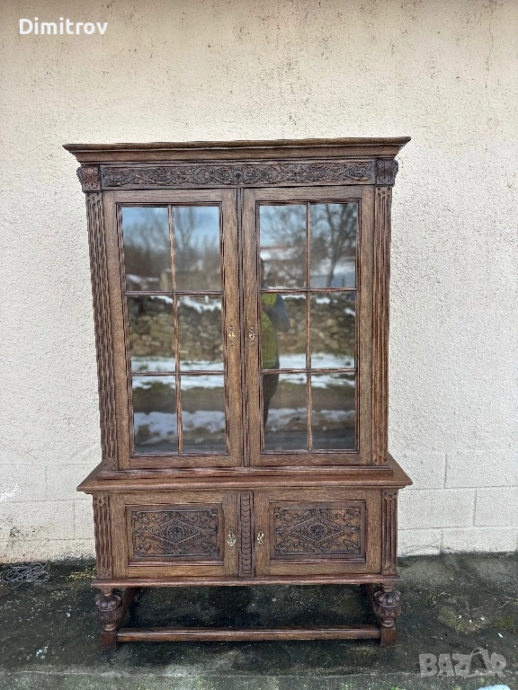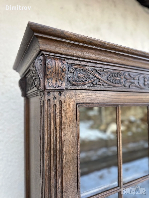 Масивна ретро витрина с дърворезба и стъклени врати → Обява 53958282