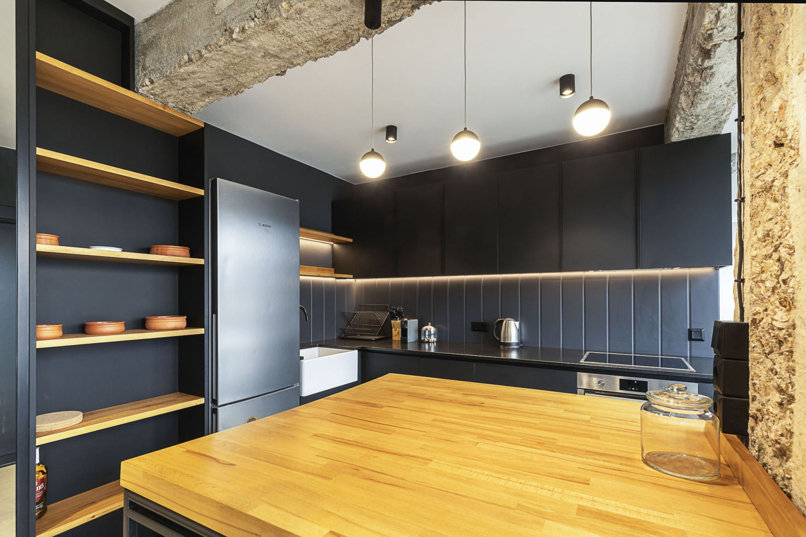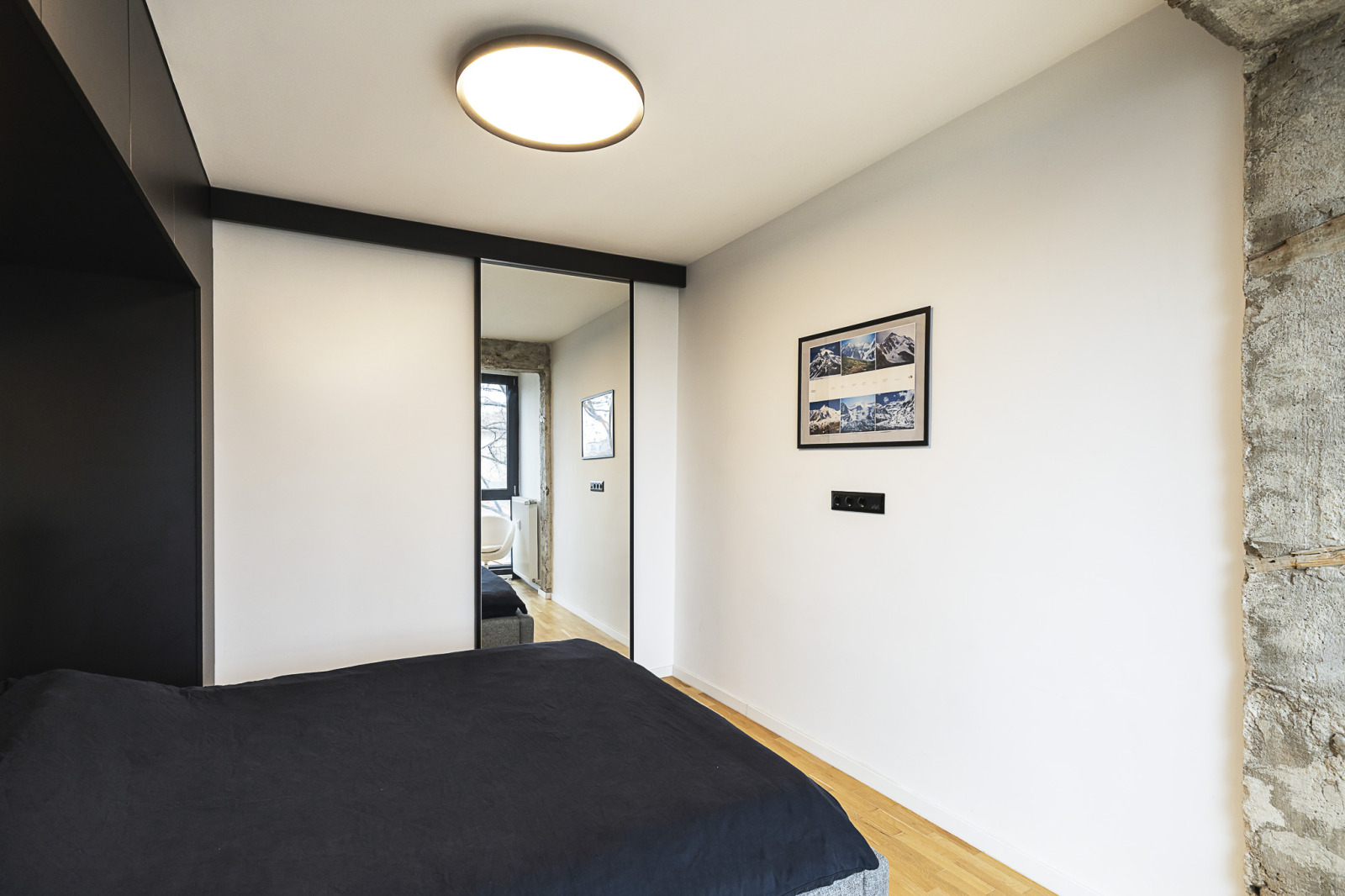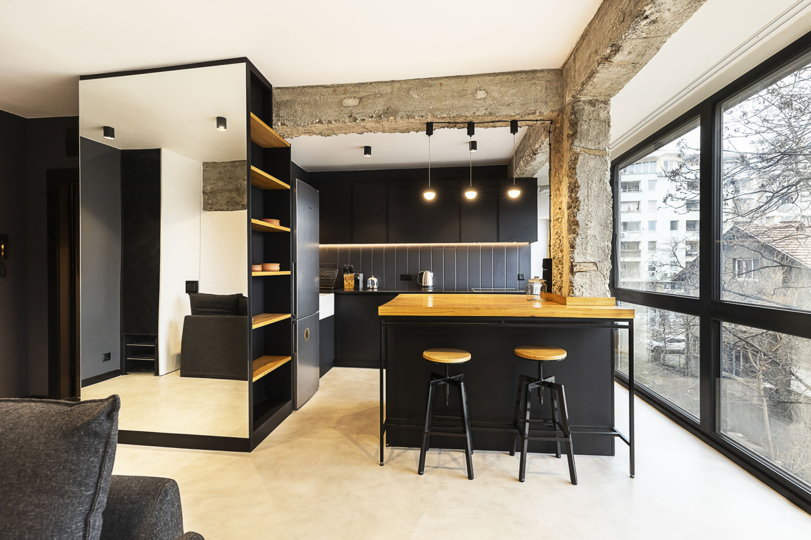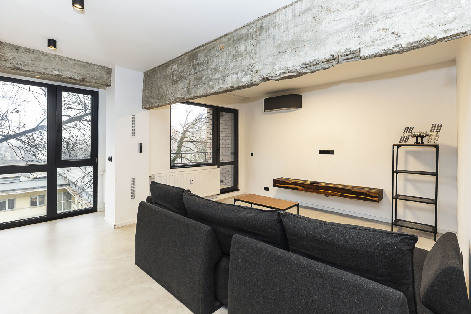 Просторен хол с отворена кухня, залят с естествена светлина благодарение на френски прозорци иизточно изложение. Отделна спалня, малка гардеробна с прохождане и балкон. Апартаментът разполага с висококачествено обзавеждане и осветление, избрани с внимание към детайла.