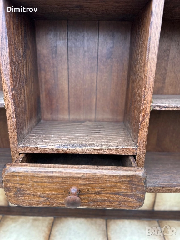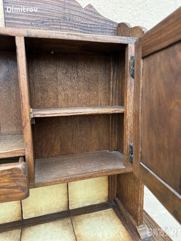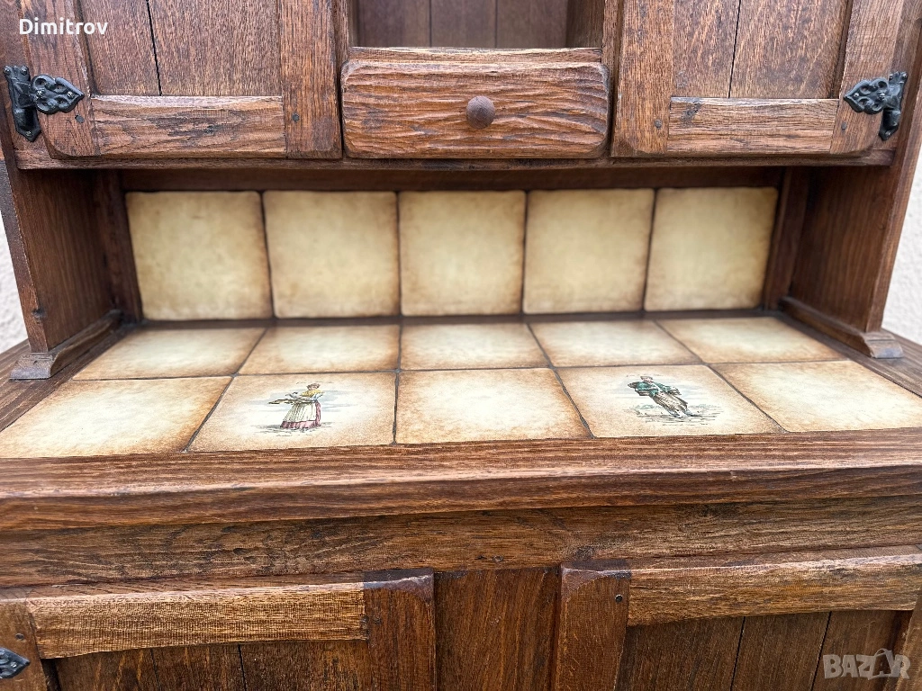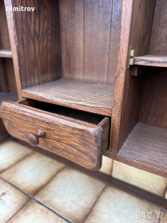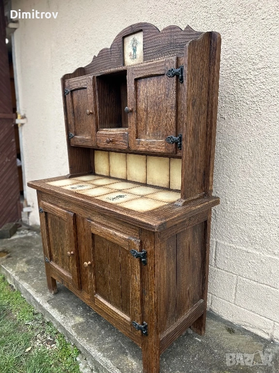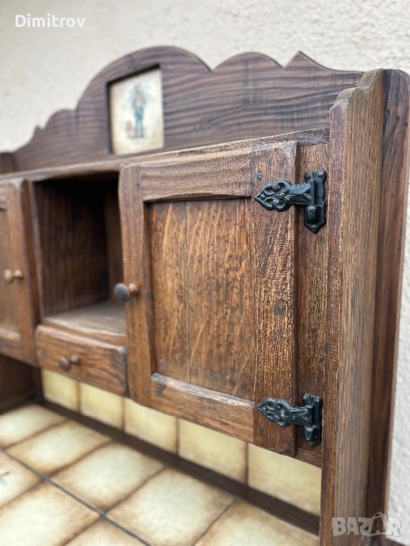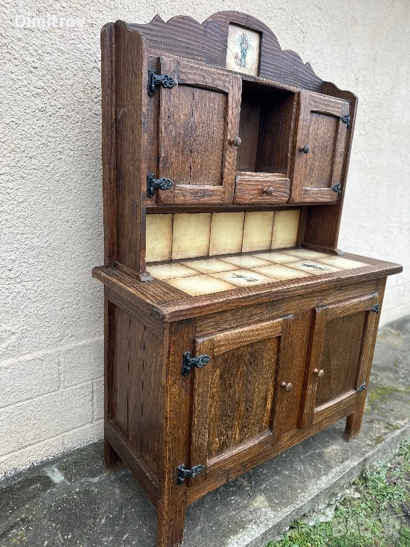 Продавам масивен дървен кухненски шкаф в рустик / винтидж стил. Изработен от плътно дърво, стабилна и здрава конструкция. Разполага с: