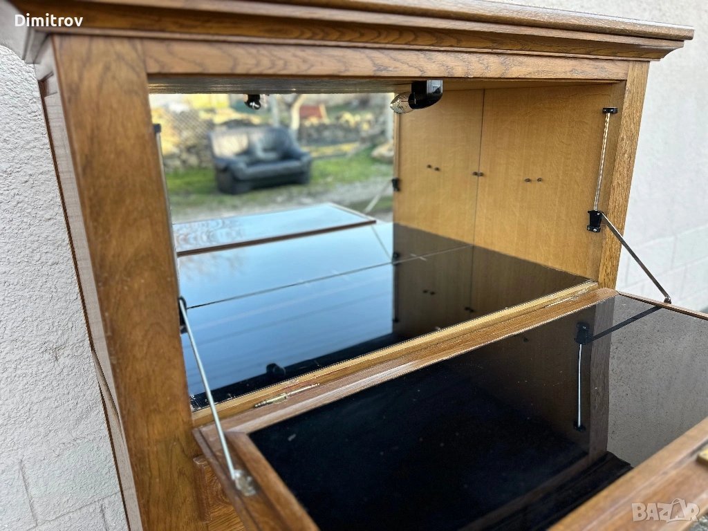 Дъбов бар шкаф / бюфет с падаща врата и осветление → Обява 53958685