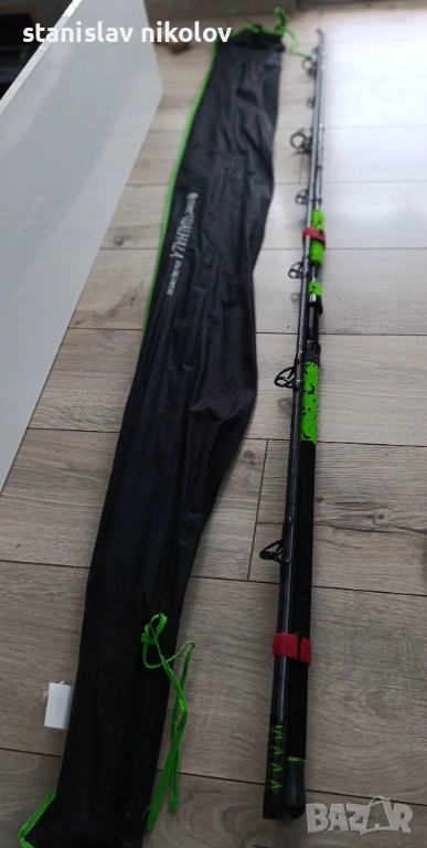 Дължина на дръжката (от началото на дръжката до средата на макародържача): 59см. !!! Въдицата не изпозвана, купена и прибрана в калъф!!! Изпращам Еконт с опция преглед и тест.