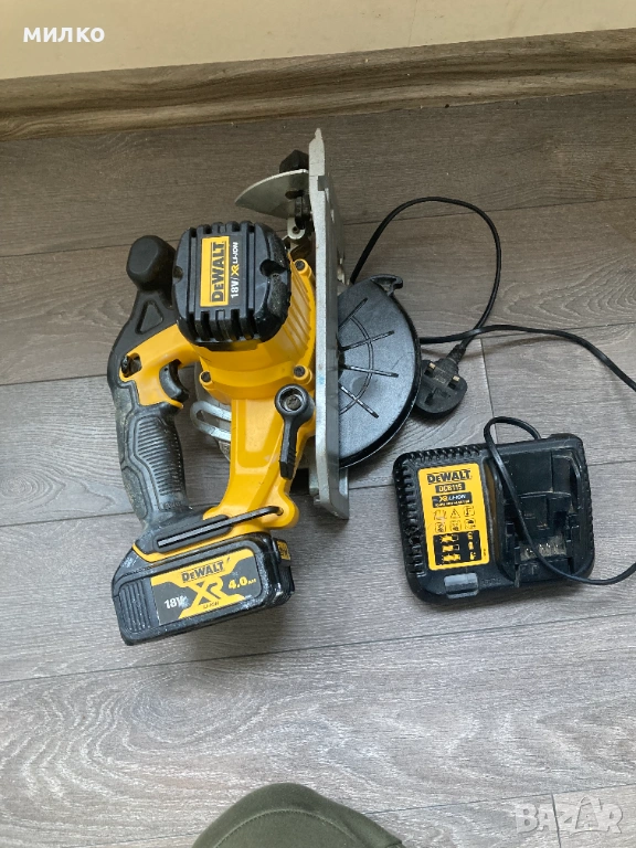 Ръчен Циркуляр Dewalt DCS391 със 1 батерия 4 ампера и зарядно!! Машината работи перфектно без проблеми!
