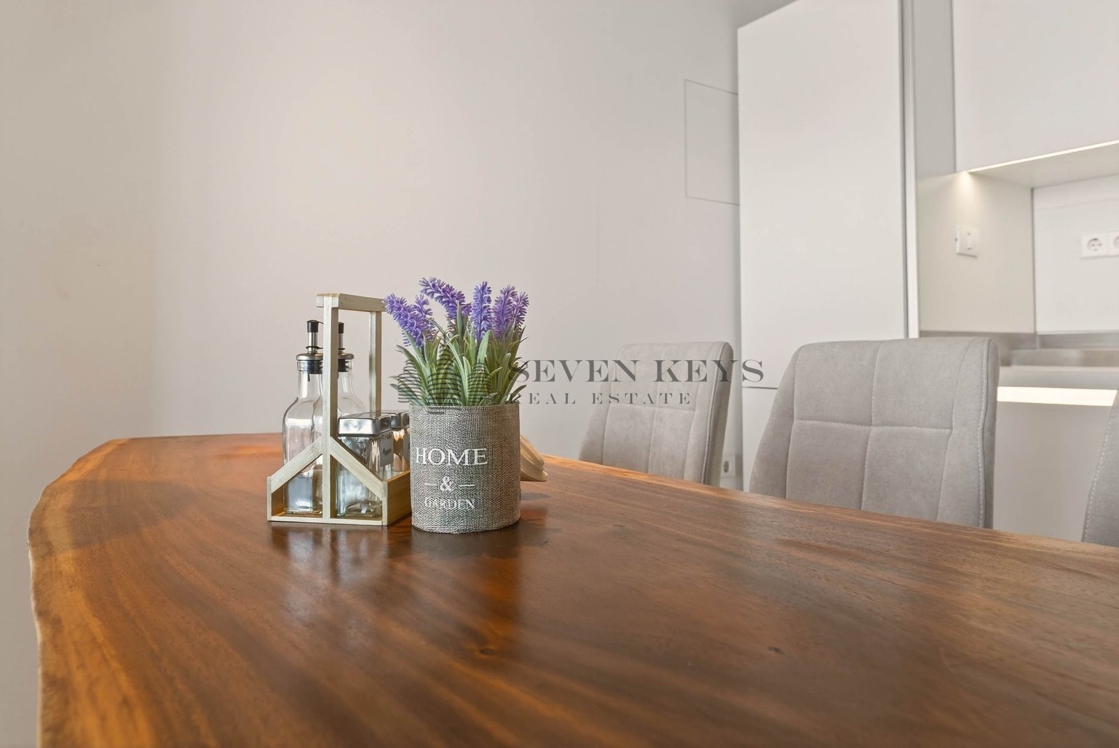Апартаментът е изцяло дизайнерски обзаведен, с внимание към всеки детайл естествени материали, висококачествено дърво, индустриални и модерни акценти, съчетани с топли цветове и елегантно осветление. Просторната дневна с кухня и трапезария е функционално организирана и идеална както за релакс, така и за посрещане на гости. Спалнята е уютна, стилна и създава перфектна атмосфера за пълноценна почивка.
