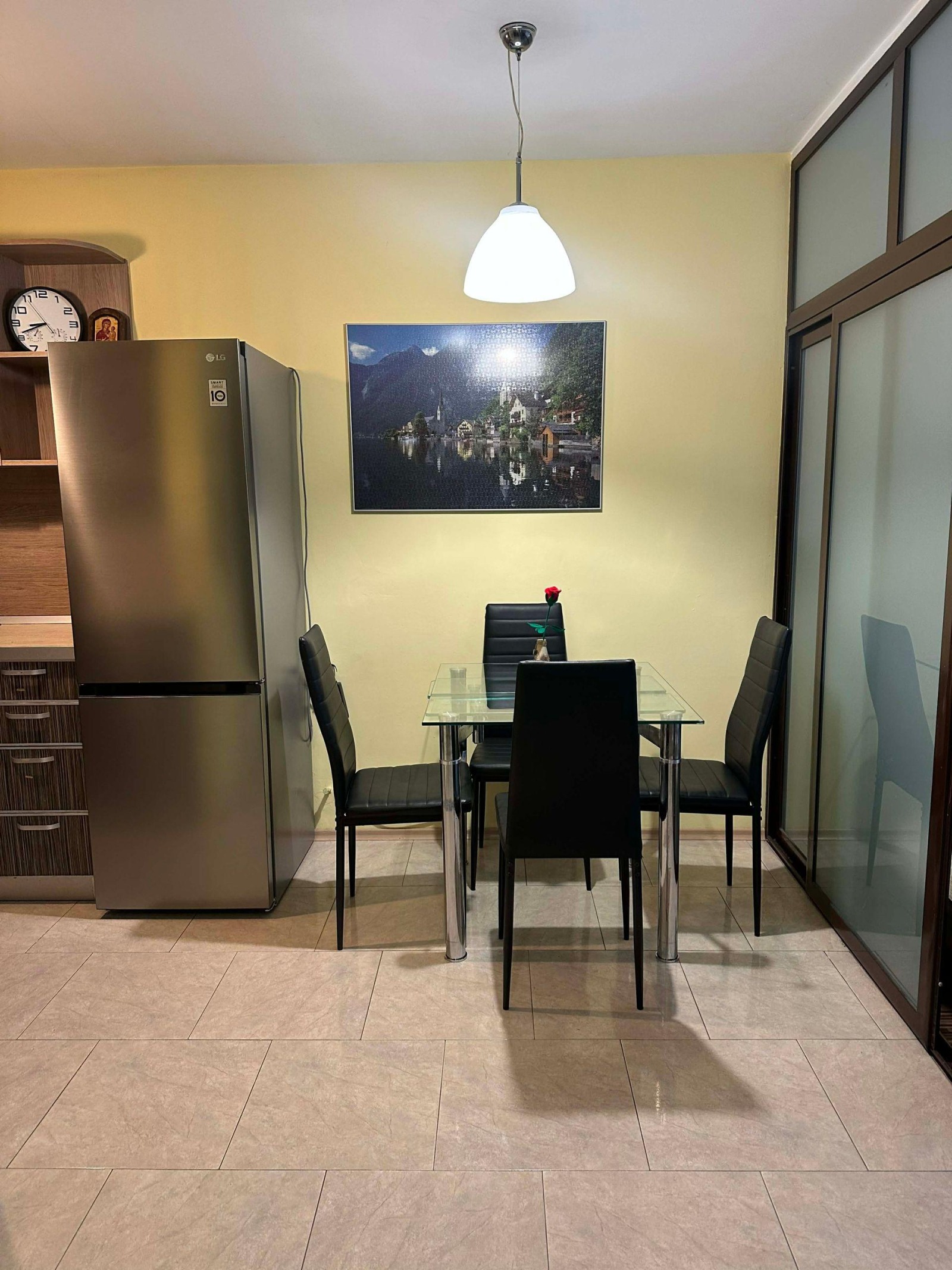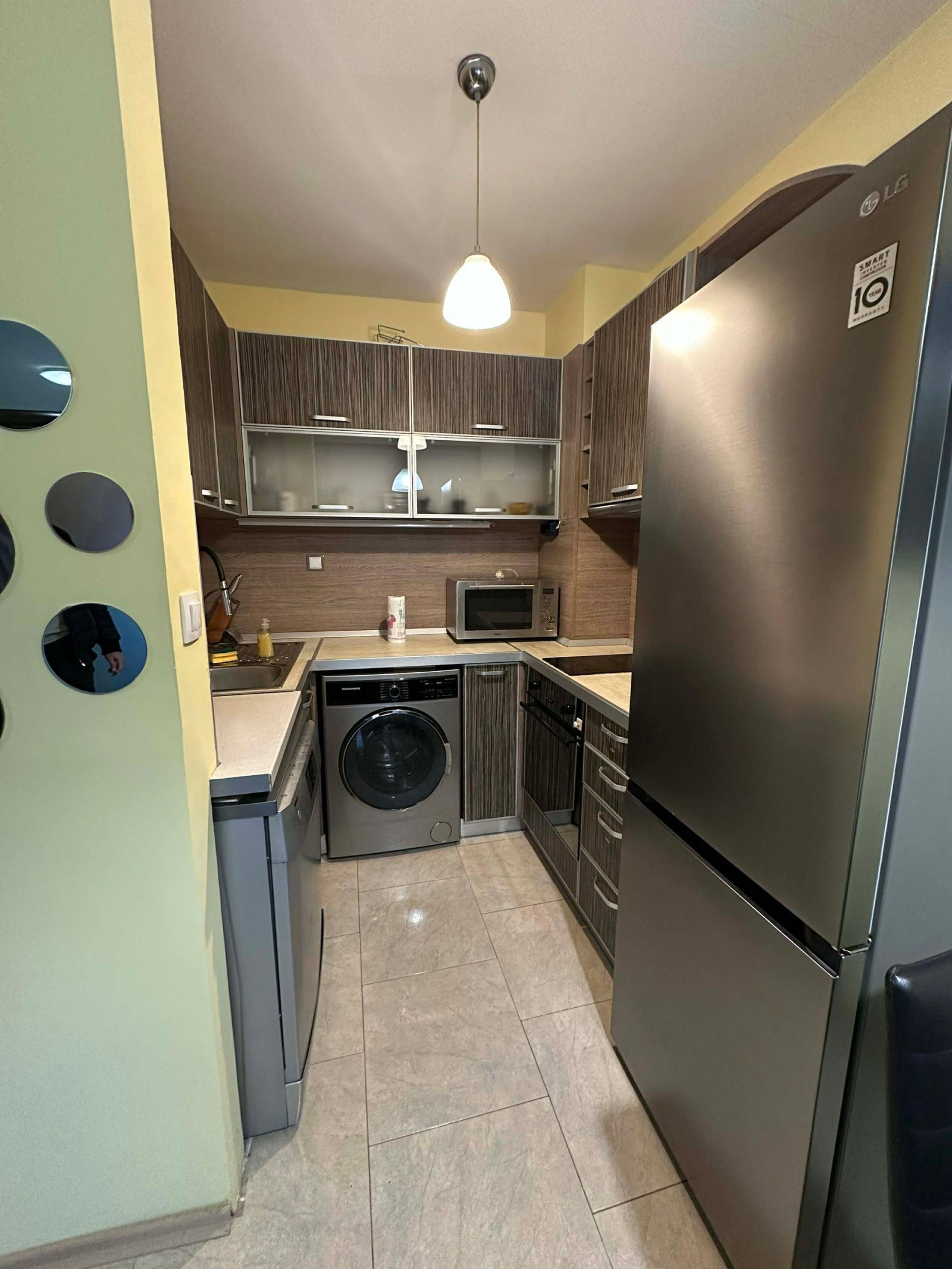 Месечният наем е 580 EUR. Обособен в съвременен стил, имотът предлага отлични условия за комфортен градски живот.