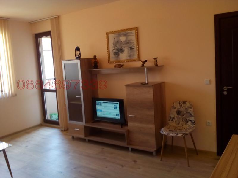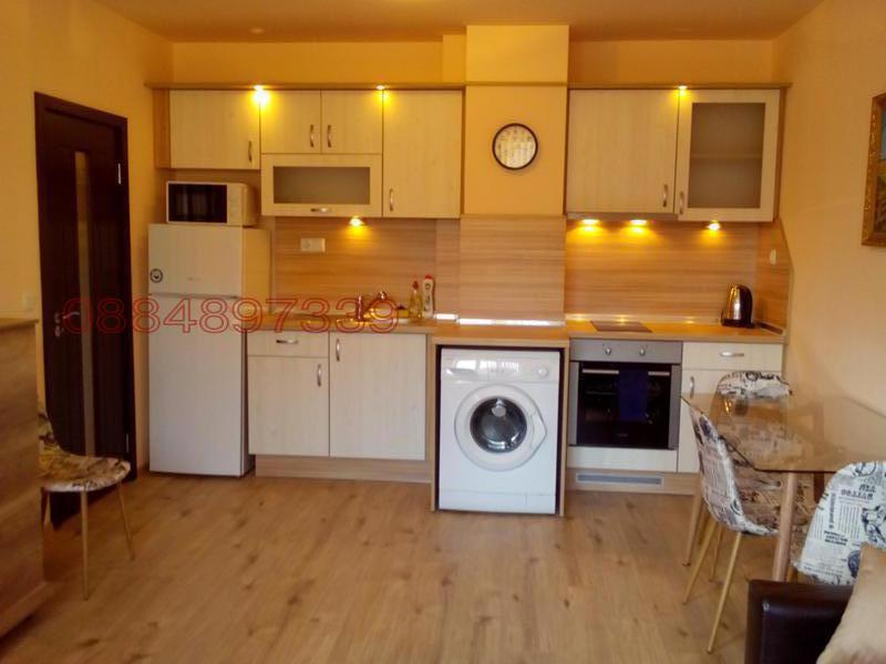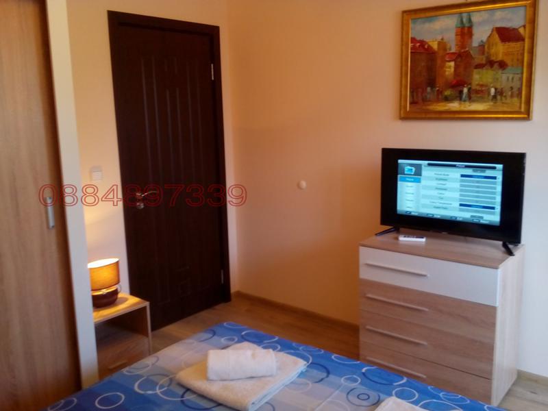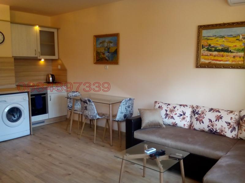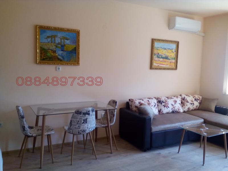 Апартаментът е нов , напълно обзаведен и се състои от дневен тракт с разтегателна холова гарнитура, кът за хранене с маса и четири стола, кухня напълно оборудвана