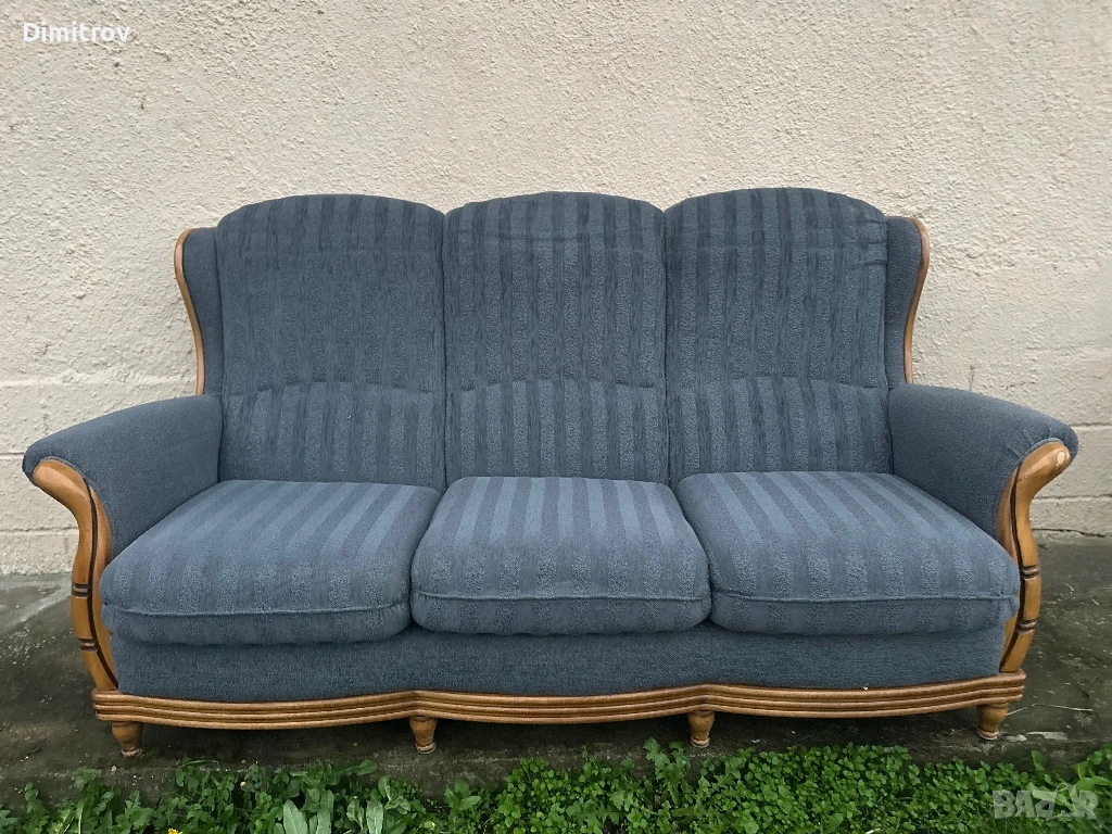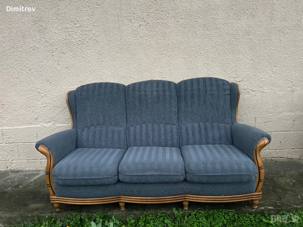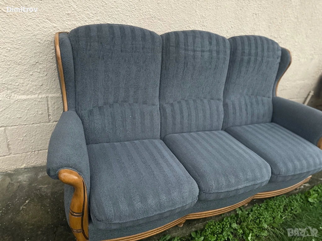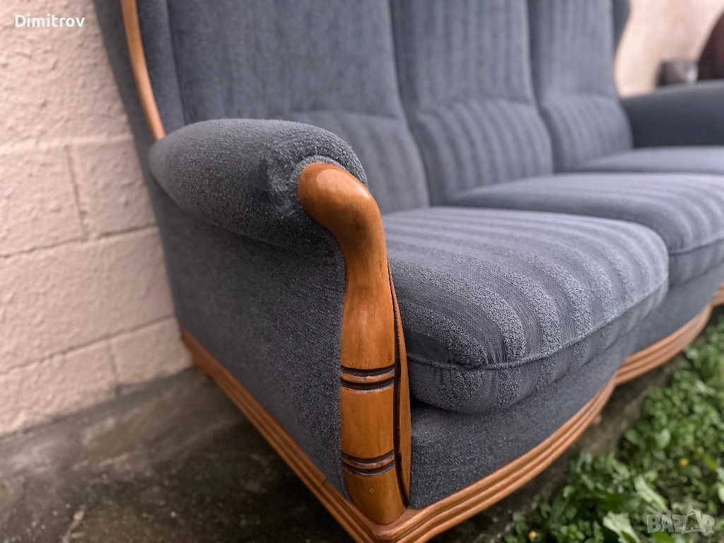 Удобен и стабилен диван с масивно дърво по подлакътниците и основата.