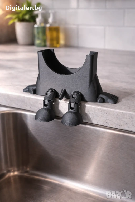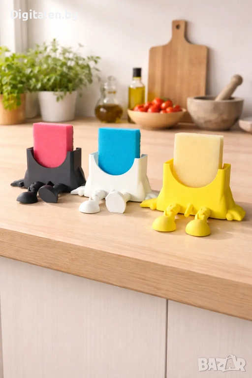 Предлагаме практична поставка за кухненска гъба с оттичане, която помага да поддържате мивката си чиста и подредена.