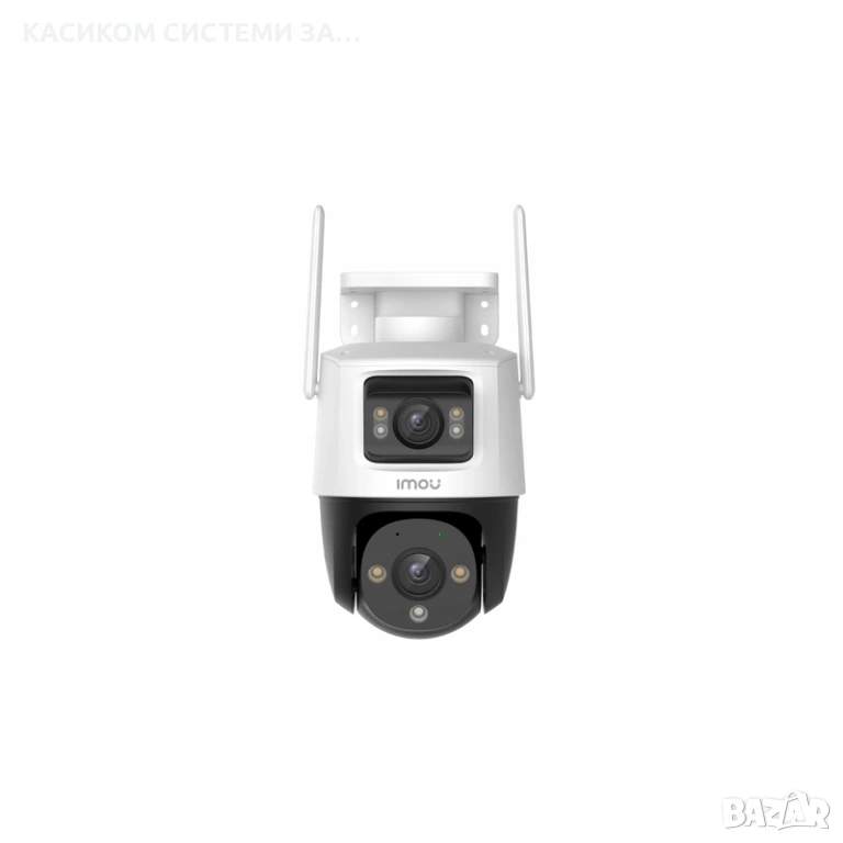 Imou Cruiser Dual 10MP, пълноцветно нощно виждане Wi-Fi IP камера 5MP + 5MP, 355° хоризонтално и 0-90° вертикално завъртане, 1/3" CMOS сензор, H.265 компресия, слот за micro SD карта (до 256GB), 30fps@1620 резолюция, 3.6mm фиксиран обектив, зрително поле (FOV) 78°, инфрачервено осветление (IR) до 30м, 8x увеличение, 1x RJ45 порт, микрофон и високоговорител, прожектор, 110dB сирена, IP66 защита