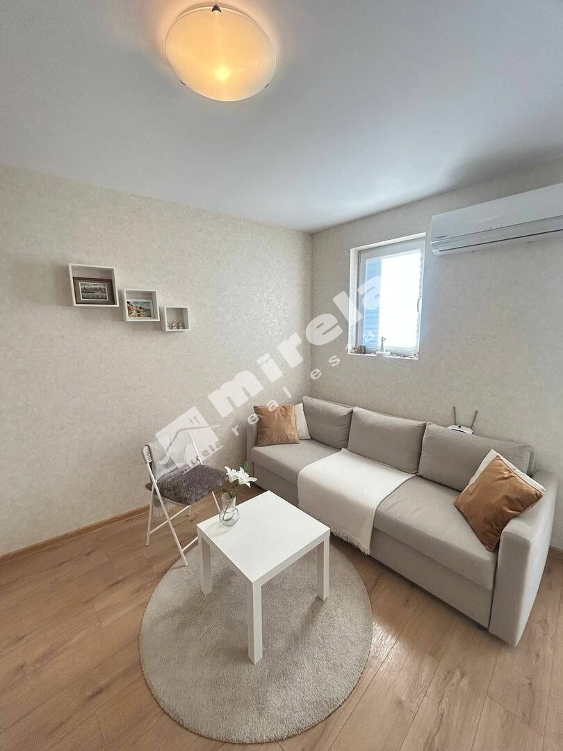 Имотът има жилищен статут; Има надземно паркомясто; Сградата има асансьор; Продава се с обзавеждане, което подлежи на уточнение; Има физическа охрана; ЕТАП НА СТРОИТЕЛСТВО: разрешение за ползване (Акт 16); ОТОПЛЕНИЕ: ел. нагреватели/климатик; Има 1 балкон/тераса; Ремонтиран; Има такса поддръжка; Луксозен имот; Преходен; Целогодишно ползване; ВИД СТРОИТЕЛСТВО: тухла; ГОДИНА НА СТРОИТЕЛСТВО: 2020 г.; ИЗЛОЖЕНИЕ: запад; СПАЛНИ: няма отделна спалня; БАНИ: 1; ДОГРАМА: PVC