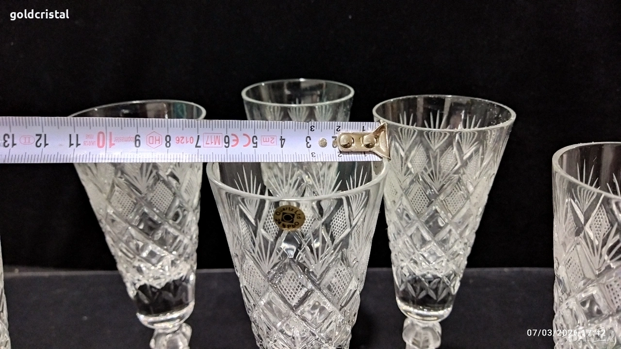 кристални чаши неизползвани сервиз комплект сет лот ретро арт декор винтидж колекция стари старинни антикварни предмети обзавеждане за дома и семейството подходящи за подарък за ценители и колекционери