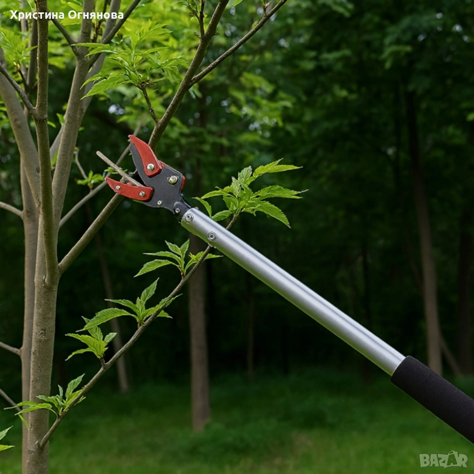 Приложение: подрязване на дървета и храсти, бране на плодове, оформяне на живи плетове и работа на труднодостъпни места