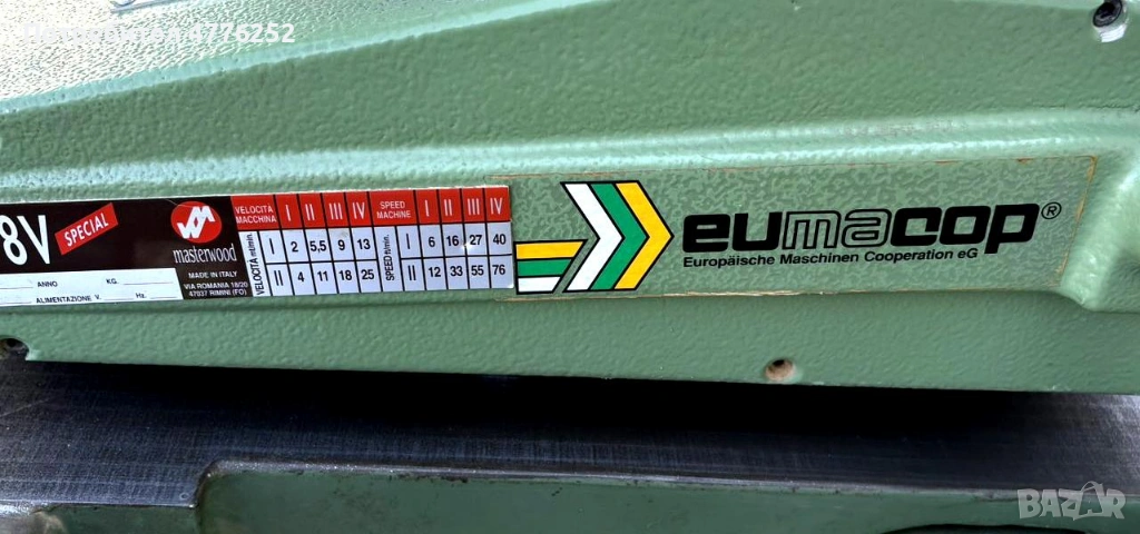 Окомплектована е с италианско подаващо устройство MEC 8V Special (Masterwood / Eumacop), 4-ролково..