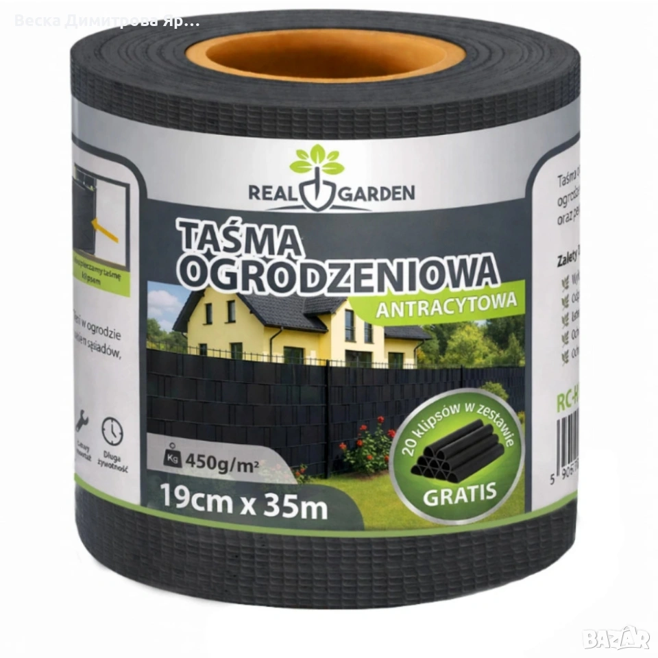 Антрацитна оградна лента 19 см x 35 м – UV устойчива и лесна за монтаж