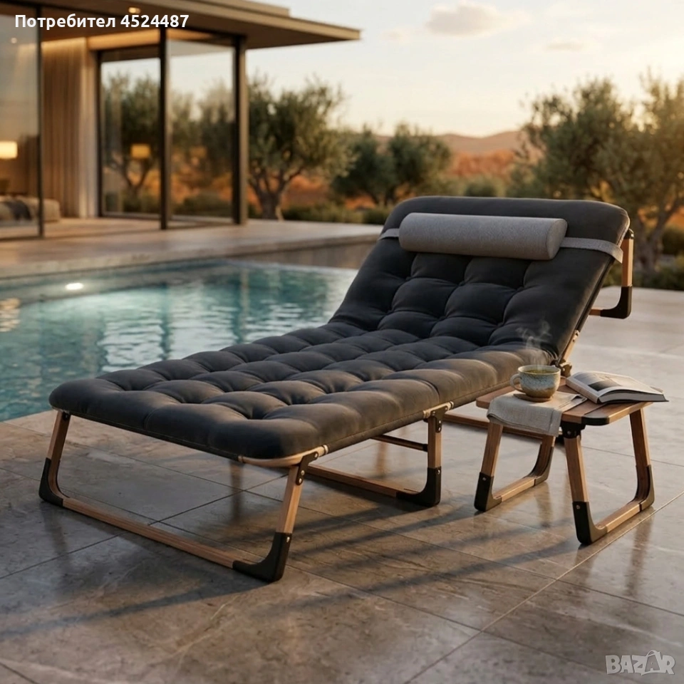 Сгъваемо къмпинг легло с матрак (180 см) – Регулируем градински шезлонг с възглавница → Обява 53960263