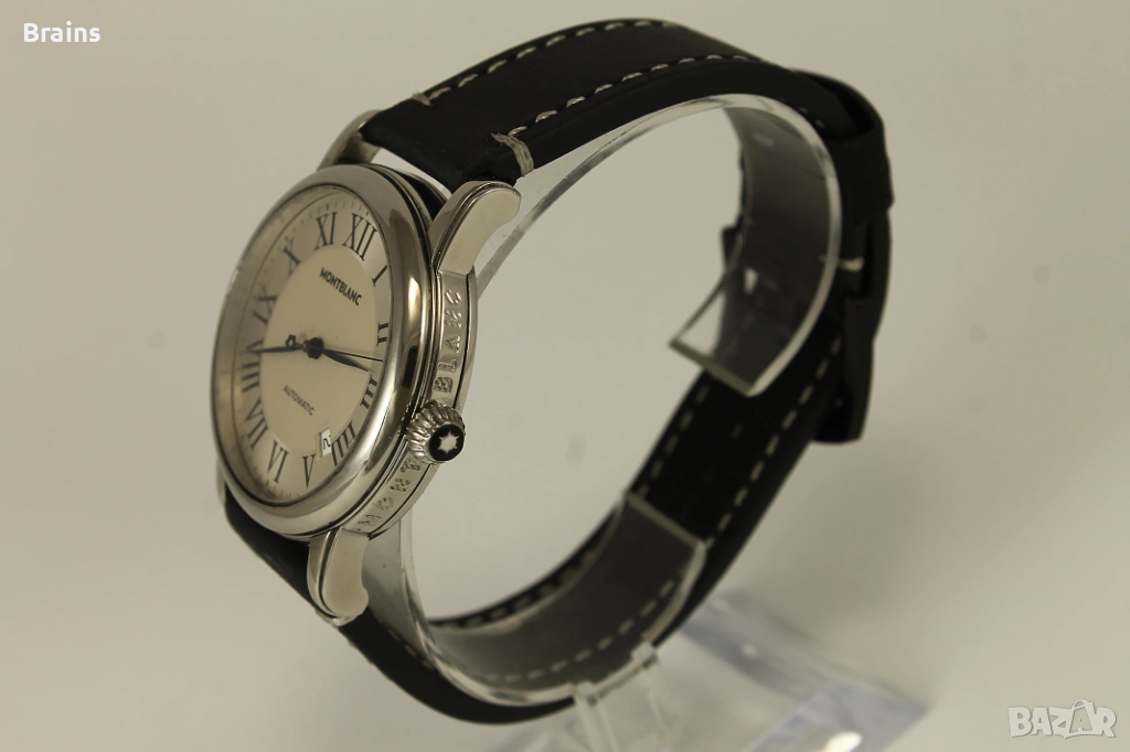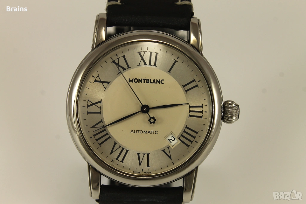 Швейцарски ръчен часовник MONTBLANC MEISTERSTUCK Automatic. Пройзведен по случай 75 годишнината на компанията. Каса изработена от неръждаема стомана. Механизъм - Швейцарски ETA 2892A2 Automatic със 21 камъка. Часовника работи точно, автомата навива нормално, календара работи коректно.