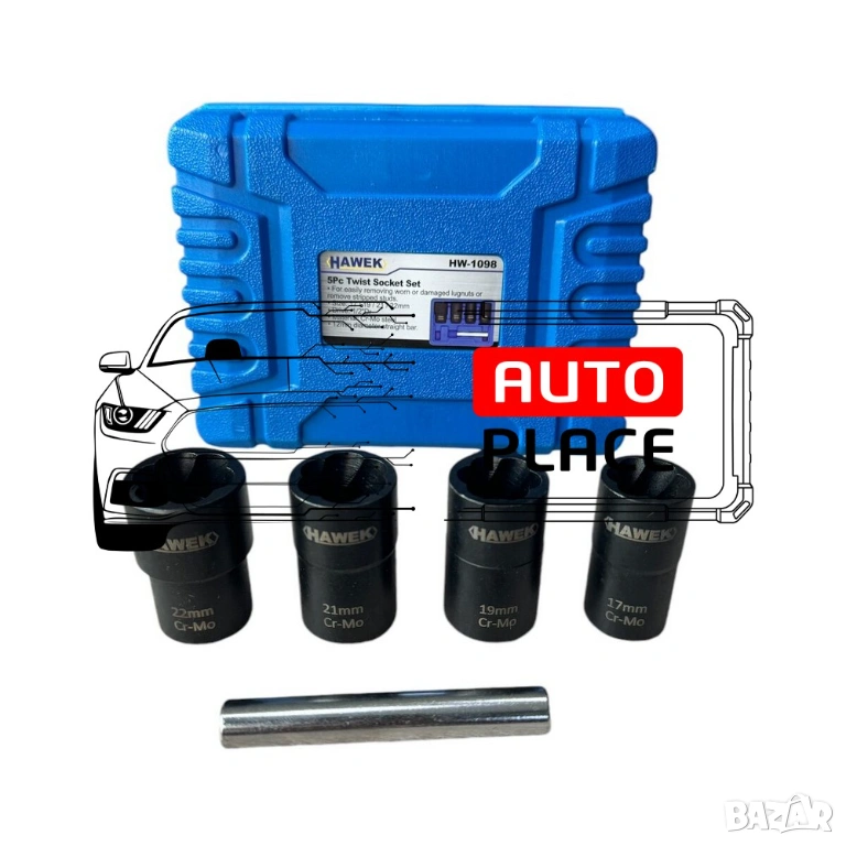 Комплект екстрактори за болтове 5 части Hawek