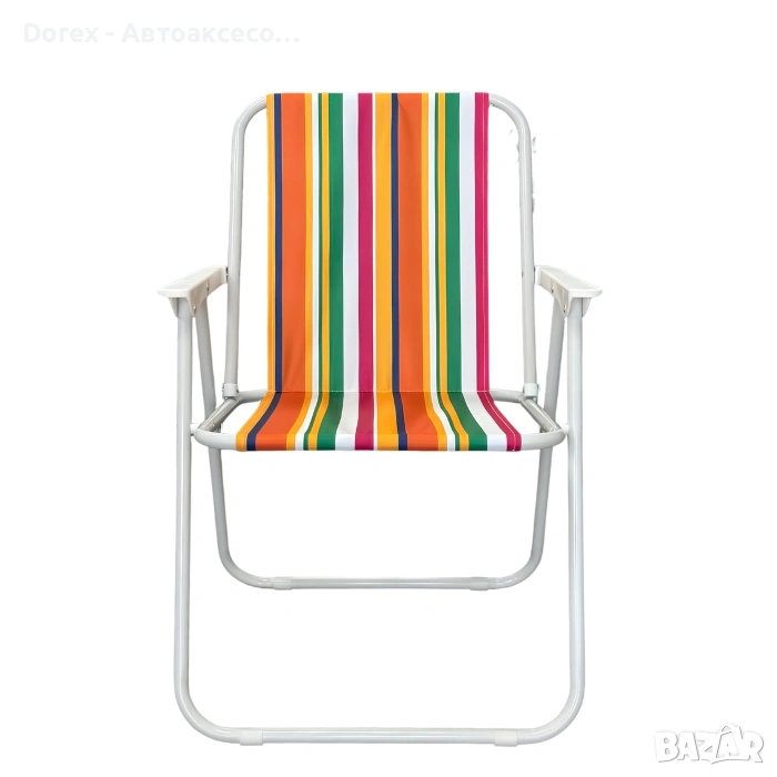 Подлакътниците допринасят за допълнително удобство и релакс, а сгъваемият механизъм позволява лесно транспортиране и компактно съхранение. Това прави стола изключително практичен за пътувания и ежедневна употреба.