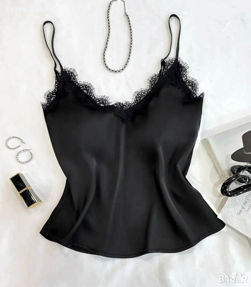 Сатенен топ с дантела