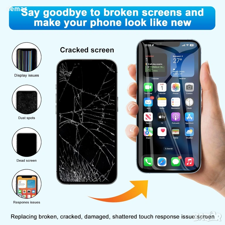 Съвместим изключително с iPhone 14 (6,1-инчов), този заместващ екран възстановява яснотата на дисплея и чувствителността на допир, като разрешава проблеми като пукнатини, мъртви пиксели, обезцветяване и неотзивчиви зони. Комплектът включва предварително тестван екран с напълно проверена функционалност, включително Haptic Touch и яркост, заедно с всички основни инструменти за ремонт, водоустойчиво уплътнение, протектор за екрана и подробна блок-схема за подпомагане на инсталацията, с насоки, препоръчани чрез специфични за модела видео уроци за най-добри резултати.