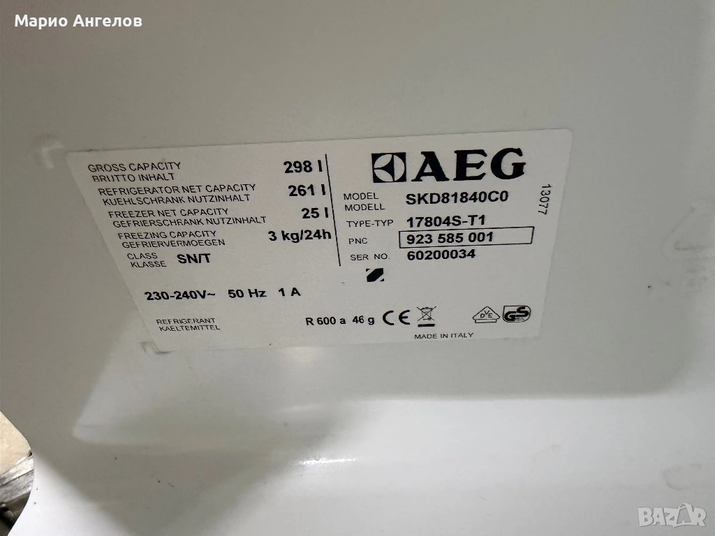 Хладилник от висок клас с вътрешна камера A++ AEG с гаранция .