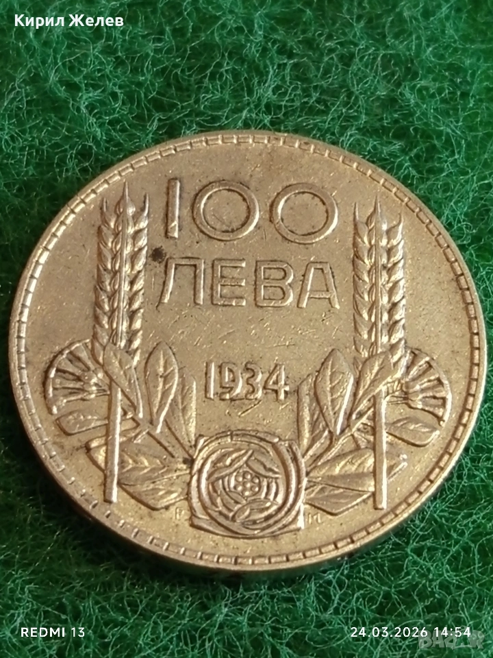 Сребърна монета 100 лева 1934г. Царство България Цар Борис трети за КОЛЕКЦИЯ 54375 → Обява 53960890