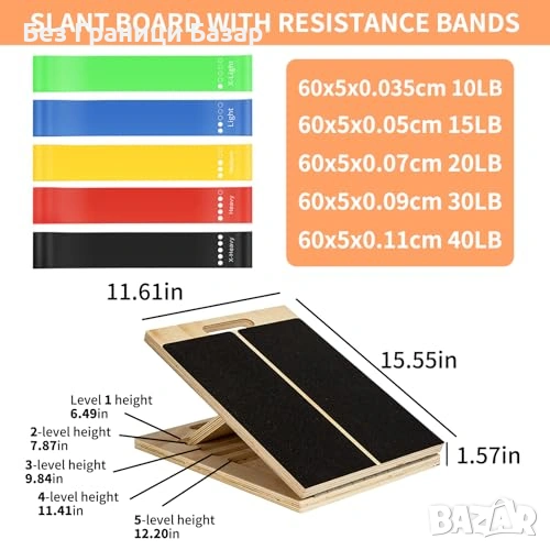 Нова Регулируема дъска за прасци глезени и разтягане с 5 ластика за спорт