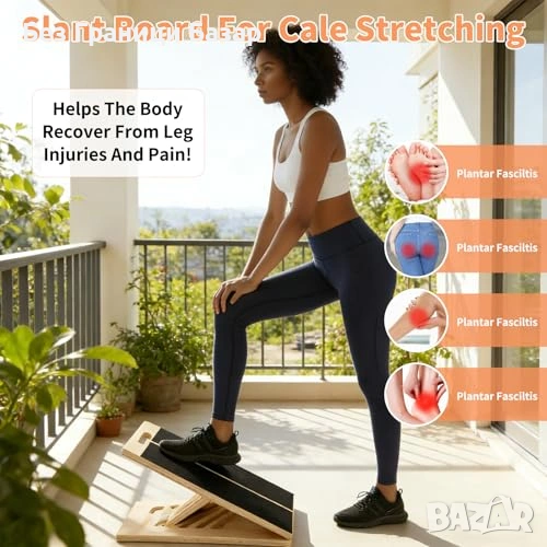 Дървена наклонена дъска за стречинг и разтягане на прасци и глезени