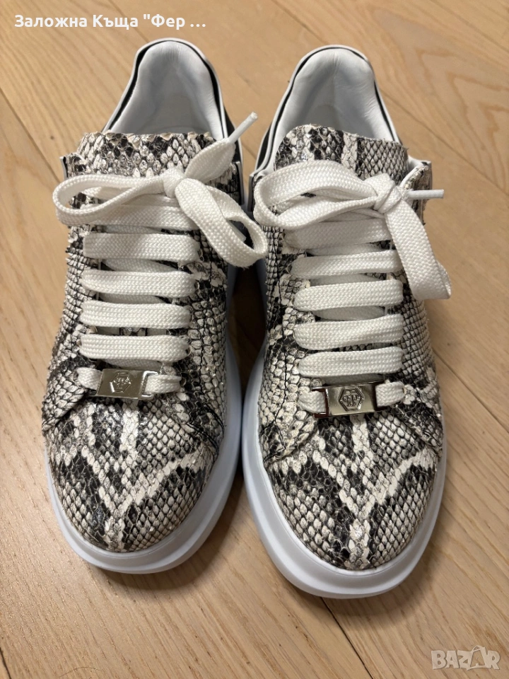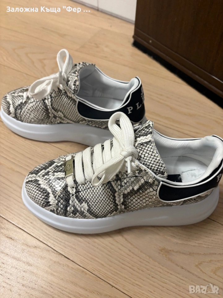 Кецовете са нови, носени са веднъж и без никаква забележка. Модела е тип кожа питон. Оригинални са, купени от Фарфеч. Имат си кутия както са пристигнали.