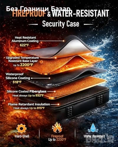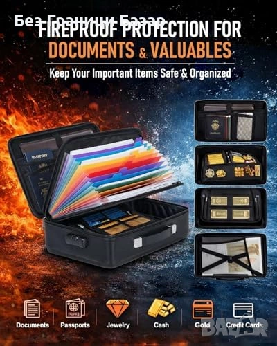 Огнеупорна и водоустойчива кутия за документи и ценности