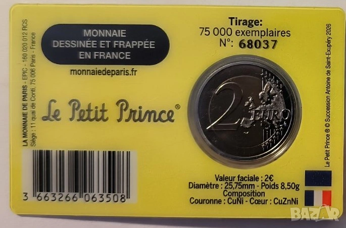 ФРАНЦИЯ 2 евро 2026 Малкият принц, снимка 1 - Нумизматика и бонистика - 53961664 ФРАНЦИЯ 2 евро 2026 Малкият принц, снимка 2 - Нумизматика и бонистика - 53961664 1/2
