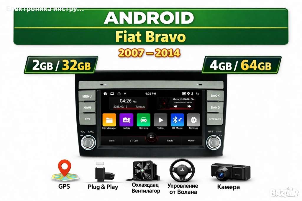 fiat bravo мултимедия, мултимедия за fiat bravo, навигация fiat bravo, 7 инча мултимедия bravo, android мултимедия fiat bravo, carplay fiat bravo, android auto fiat bravo, рамка за fiat bravo, мултимедия 2gb 32gb, мултимедия 4gb 64gb, навигация за fiat 2007 2008 2009 2010 2011 2012 2013 2014, мултимедия със задна камера, plug and play fiat bravo