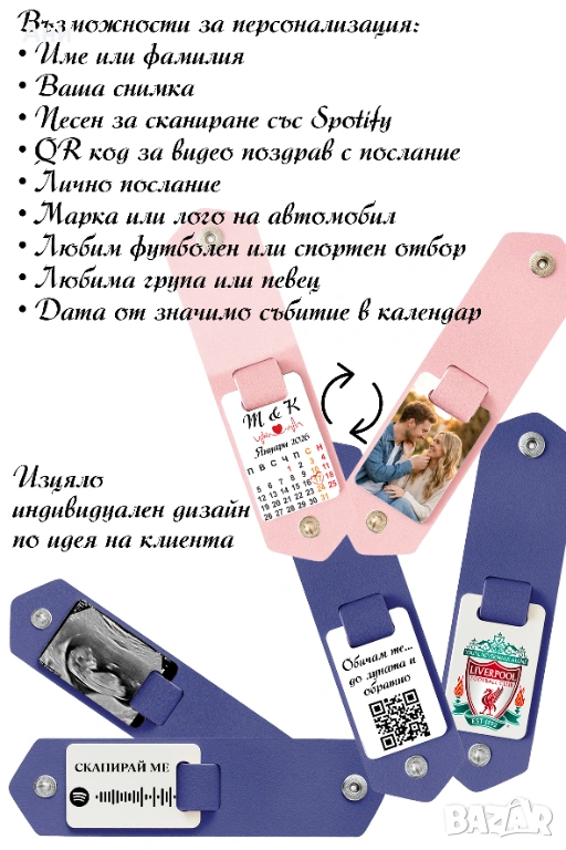Персонализиран кожен ключодържател със снимка, видео, песен послание → Обява 53961820