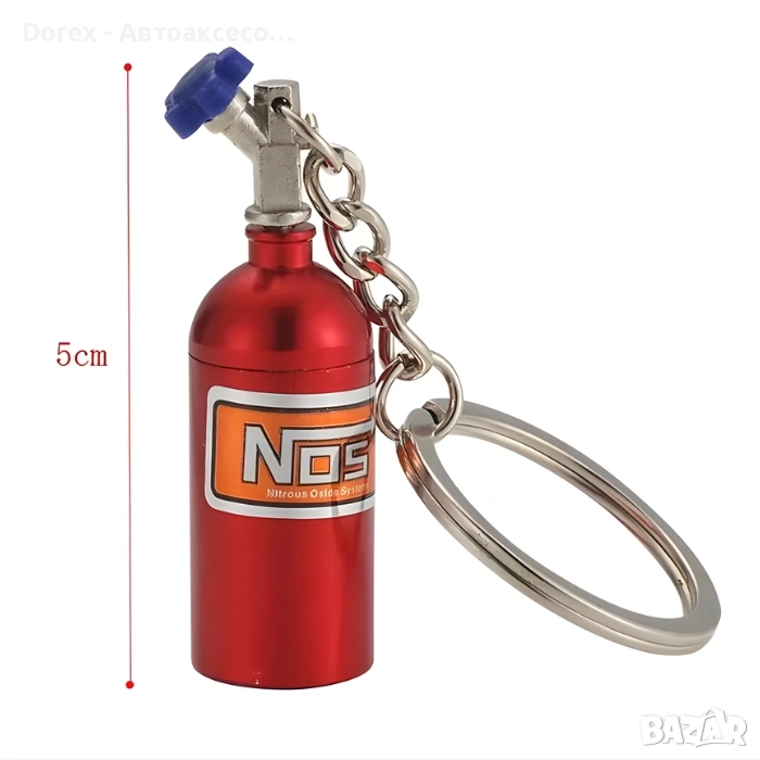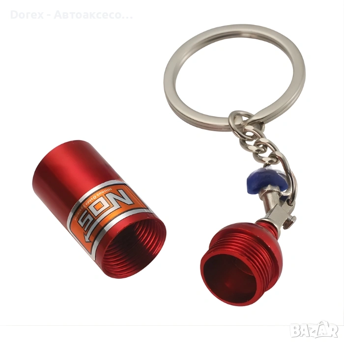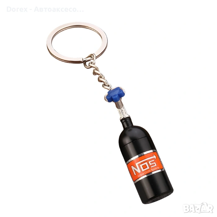 Оригинален ключодържател с дизайн на NOS бутилка, вдъхновен от автомобилния тунинг и състезателната култура. Стилен аксесоар, който е идеален за автомобилни ентусиасти, фенове на бързите коли и нестандартните детайли.