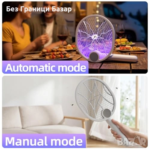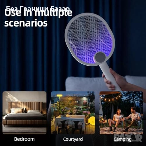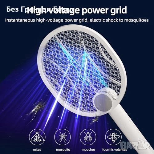 Електрическа мухобойка с мощна 4000V мрежа за бързо и ефективно унищожаване на комари и летящи насекоми
