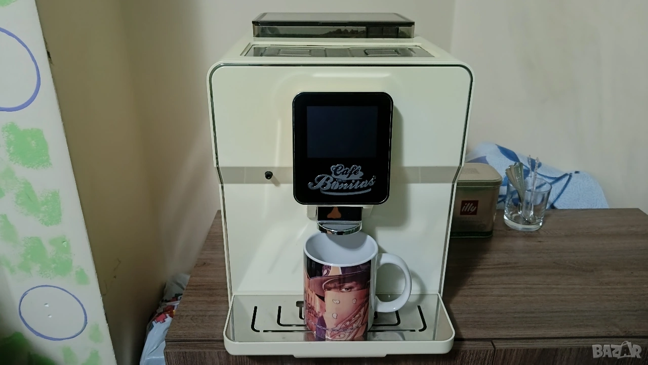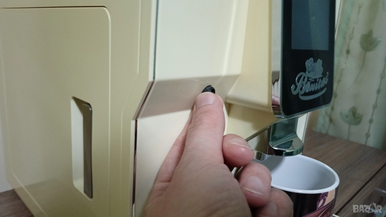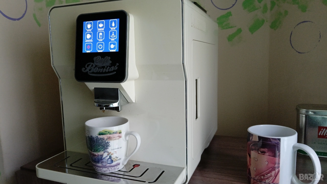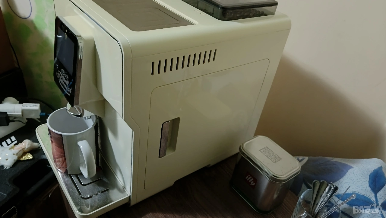 Забележка: функция лате макиато, капучино, мляко, и т.н. не работи. От тъча си работи, Но приставката я няма! Вижте последната снимка! Посочил съм. Преди време е изгубена, и без нея не става, то е една пластмасова която се завиваше със маркуче, което влизаше в кутията мляко или бутилката. Иначе еспресо и вода за чайче си правите 😁 ако се чудите как се пуска кафеавтомата, виждал съм всякакви примати, блъскащи натискащи зверски тъча, на своите машини? 🤔 Кликва се два пъти с пръст по тъча, (нормално) и се активира, при изключване се задържа 3сек. Power бутона, ( на тъча) няма нищо сложно 😉 ако нямате елементарни познания, питайте някой? Преди да псувате и чупите. Кафеавтомата го тествам пред вас! Задължително, и после как го експлоатирате не е моя работа, и не поемам отговорност. Време за губене в коментар на цената, или тестове нямам! Ако знаете какво търсите ок. Но не ми идвайте с цел пазарлък, и напразни тестове. Разгледайте прикачените снимки, прочетете цялото описание!Продавам това в обявата, без други приспособления към нея, като канички, маркучи и т.н. В профила си имам още един кафеавтомат! На Крупс. Всичко в профила ми е лично!! Просто с времето ми е писнало, или съм си купил друго, за това се продава. Обявата е само за София! Лично предаване. Със здраве и приятно пазаруване. 😉
