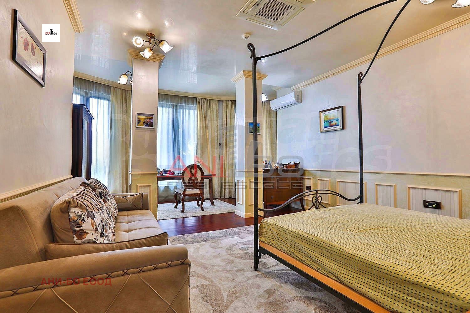 АНИ-БО недвижими имоти продава луксозен, аристократичен имот в к.к. Св.Св. Константин и Елена, област Варна. Просторен и изискан дом със стилен интериор представен в 753 кв. м. чиста използваема площ и аранжиран двор от 1 129 кв. м. Къщата се състои от сутерен, първи, втори и мансарден етаж, луксозно завършени и обзаведени със селектирани виско-технологични материали и индивидуални дизайнерски решения. Подходяща е за големи семейства, както и за техните гости. Релакс и комфорт внасят фитнес залата,сауната, джакузи, външният басейн, библиотеката и зимната градина.