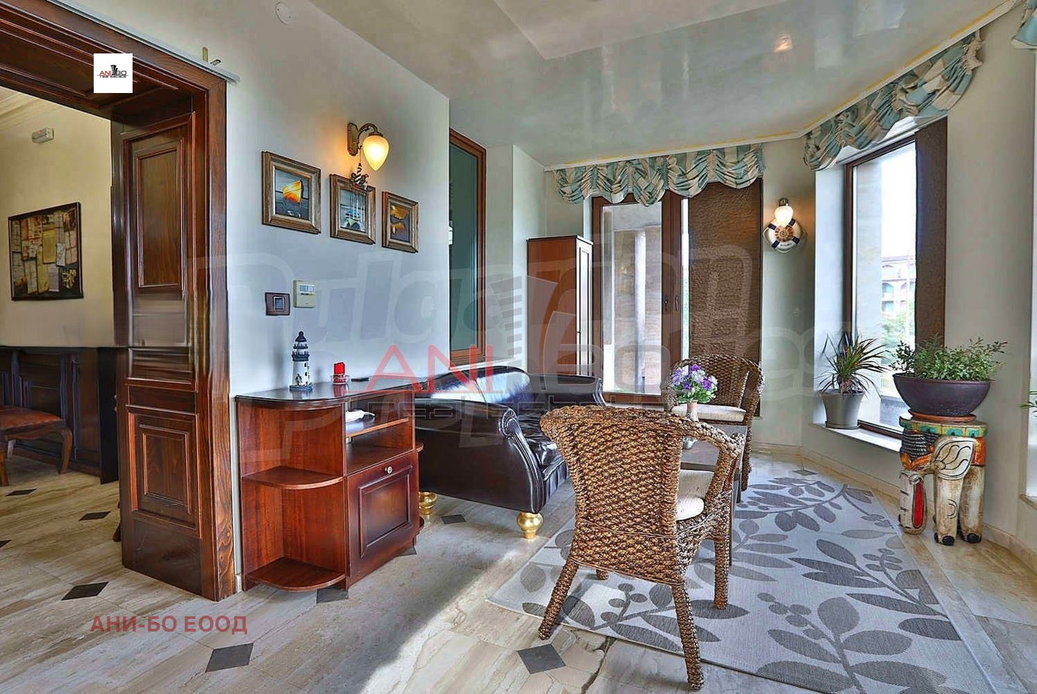 зимна градина /ковано желязо, френски прозорци, италиански мармор/