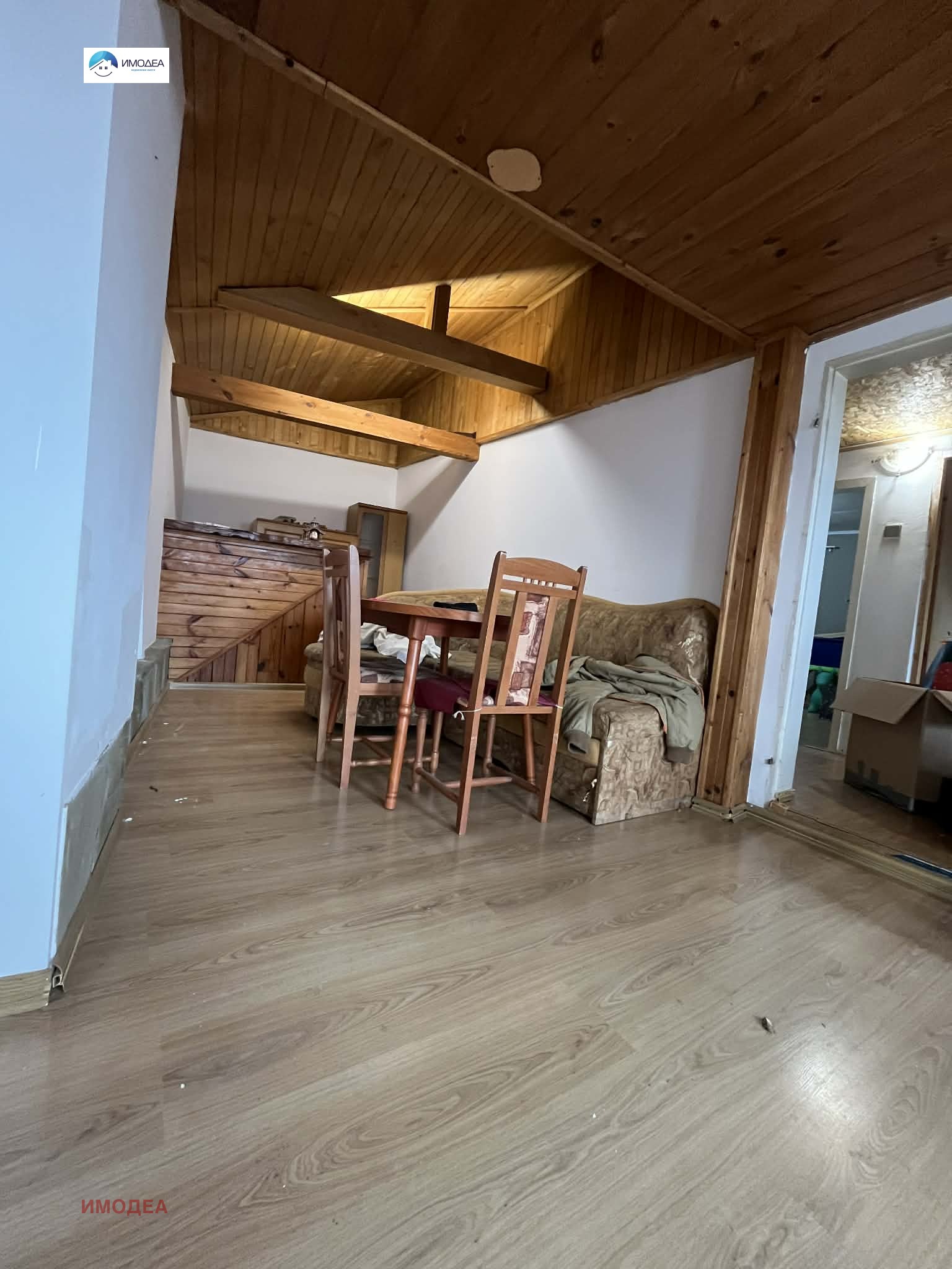 Вторият етаж е с площ от 82 кв.м и се състои от кухня, дневна, две спални, баня с тоалетна, мокро помещение (преустроен килер) и тераса с впечатляваща панорамна гледка към града. Етажът е в много добро състояние, с извършени подобрения, включително външна топлоизолация, ПВЦ дограма и обновен санитарен възел.