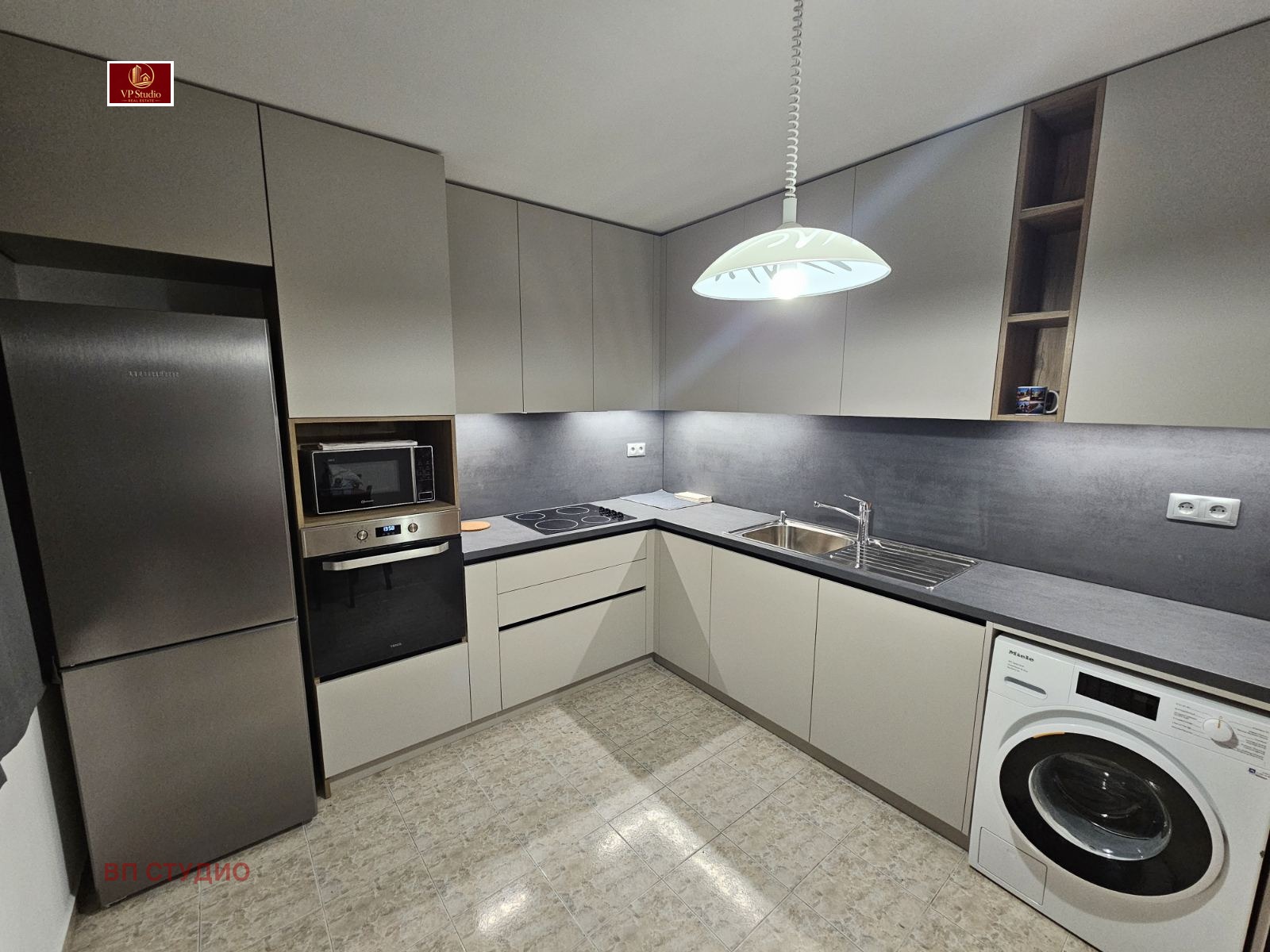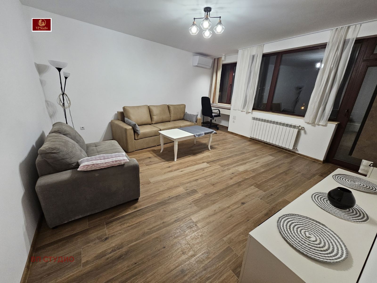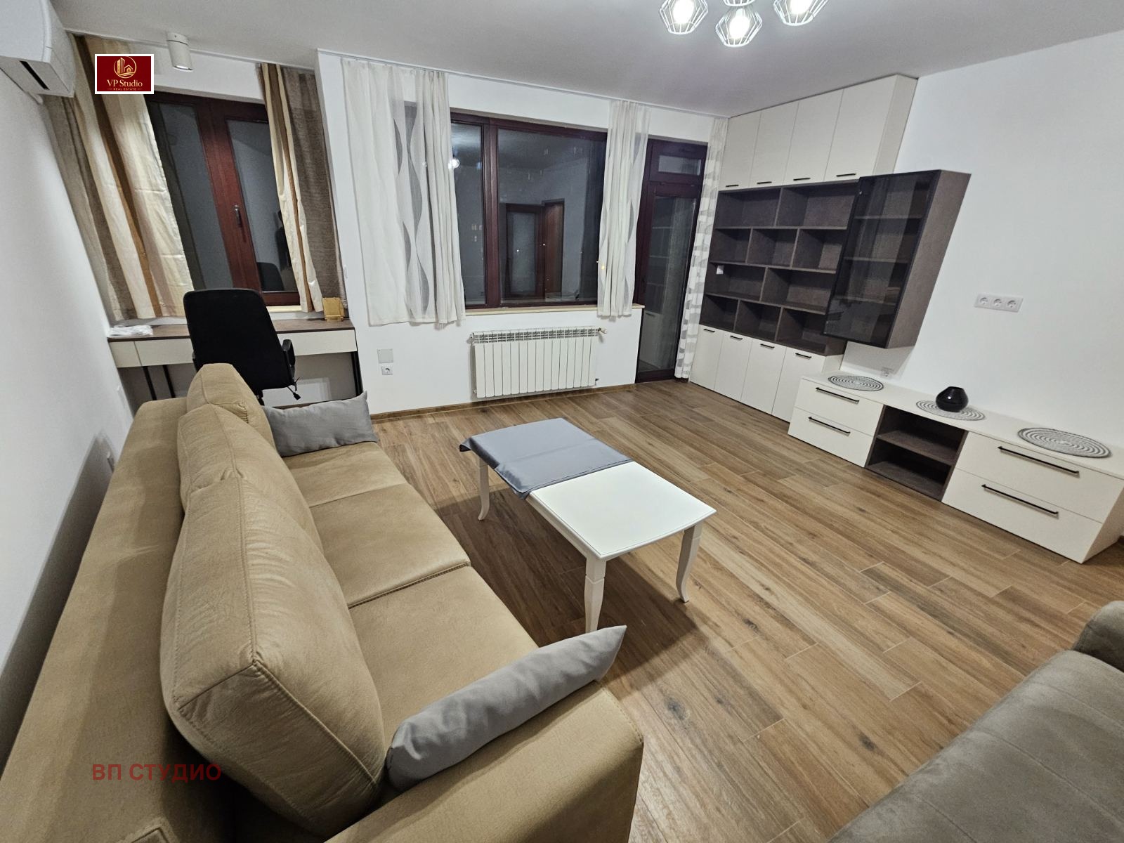 VP STUDIO представя ексклузивно на вашето внимание просторен двустаен апартамент с отделна кухня и на ТОП ЛОКАЦИЯ, квадратура 85кв.м. Сградата е ново строителство, намира се на бул.Иван Гешов, в близост до магазин БИЛА, спирки на градски транспорт, множество магазини и заведения, както и до Медицинския Университет и Факултета по Дентална Медицина. Разпределение: самостоятелна кухня с ново кухненско обзавеждане и електроуреди в гаранция, дневна, стая, баня с тоалетна, два балкона. Апартамента е след основен ремонт и е напълно обзаведен с нови мебели по поръчка, както и функционално разпределен за да предложи комфортно обитаване на бъдещия наемател. Отоплението е на ТЕЦ, има и два нови климатика Мицубиши. Намира се на четвърти жилищен етаж, вътрешен, светъл и с ниски сметки за отопление през зимата. Не се допускат домашни любимци. Огледи са възможни след предварителна уговорка, вкл. в събота и неделя.