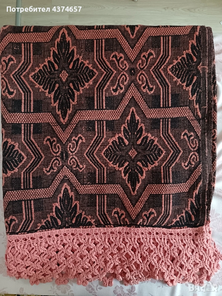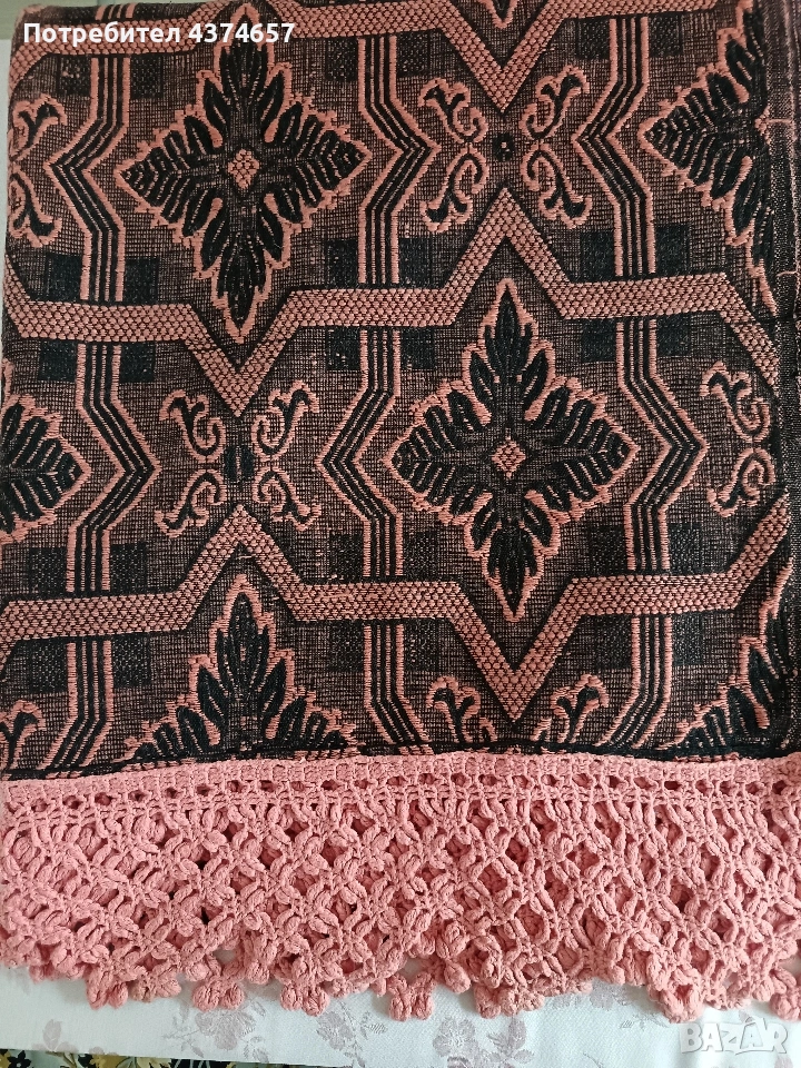 Сн. 3 и 4 Розова покривка с размери 160/210 см. и ръчно плетена дантела на една кука - 18 см.