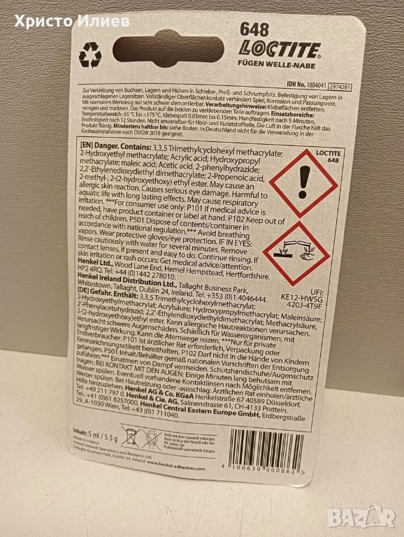 LOCTITE 648 – Високоякостно лепило за цилиндрични компоненти, 5мл