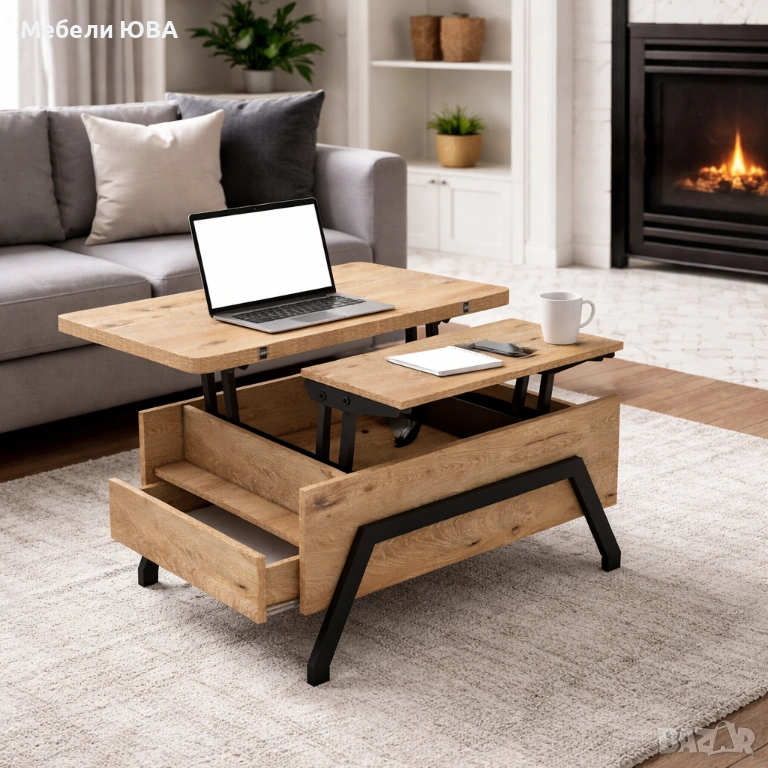 Маса с повдигащ механизъм – дъб артисан/ черно