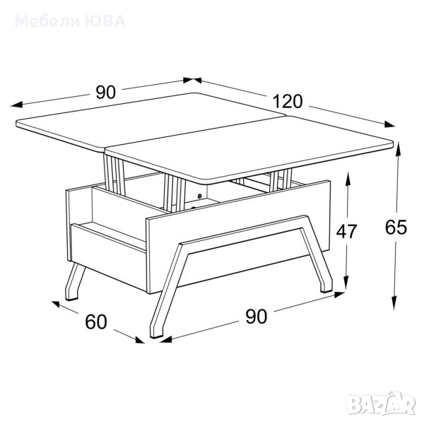 Размери: ш/в/д 90/47-65/60-120 см
