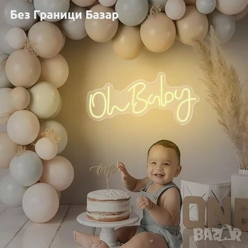 Нов знак лампа LED неонова табела Oh Baby USB за baby shower и детска стая