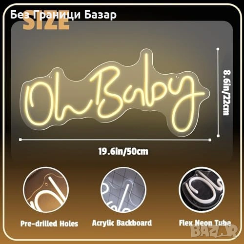 Декоративен LED неон „Oh Baby“ за уютна и стилна атмосфера