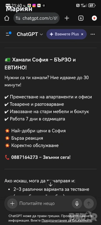 Хамалски услуги → Обява 53963284