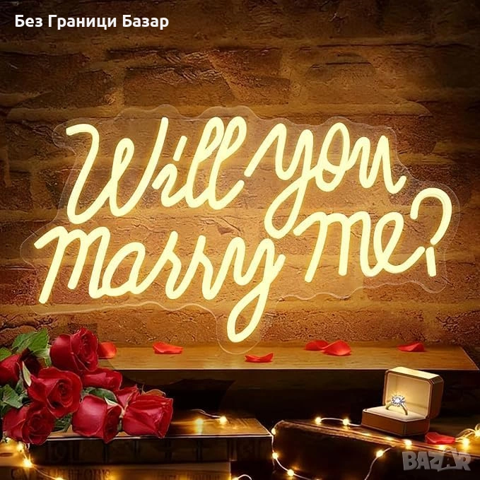 Ефектен неонов надпис „Will You Marry Me“ за специални поводи