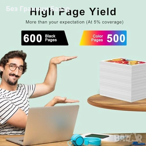 До 600 страници за черната и до 500 страници за цветната касета при 5% покритие