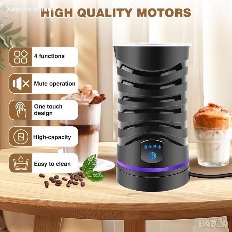 ДИЗАЙН С ЕДНО ДОКОСВАНЕ: Автоматичният разпенител за мляко е с удобен за потребителя дизайн с сензорен екран с едно докосване. Просто натиснете бутона, за да изберете желания режим на разпенване на мляко за тиха и комфортна работа.